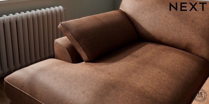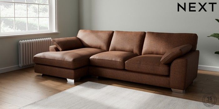 7.3.1 Buy Stamford Grand Relaxed Sit Large Sofa Chaise - Left Hand Monza Faux Leather Easy Clean Chestnut Brown Large Square Angle - Chrome Metal from the Next UK online shop