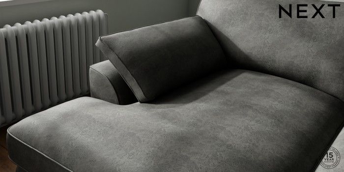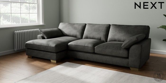 7.3.1 Buy Stamford Grand Relaxed Sit Large Sofa Chaise - Left Hand Monza Faux Leather Easy Clean Dark Grey Large Square Angle - Brushed Brass from the Next UK online shop Click here to use our accessible website