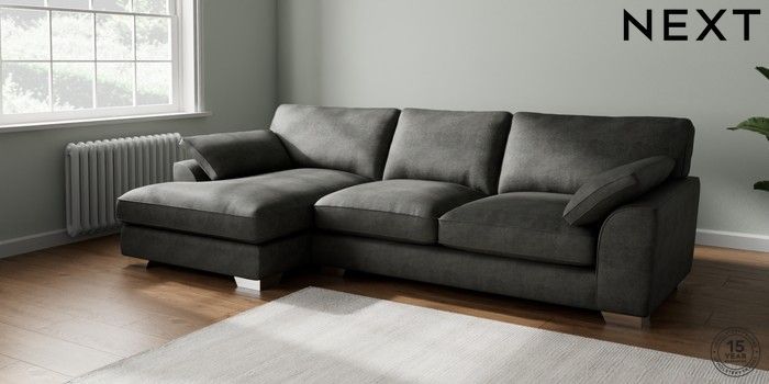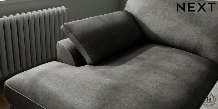 7.3.1 Buy Stamford Grand Relaxed Sit Large Sofa Chaise - Left Hand Monza Faux Leather Easy Clean Dark Grey Large Square Angle - Chrome Metal from the Next UK online shop Click here to use our accessible website