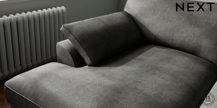 7.3.1 Buy Stamford Grand Relaxed Sit Large Sofa Chaise - Left Hand Monza Faux Leather Easy Clean Dark Grey Large Square Angle - Dark from the Next UK online shop Click here to use our accessible website