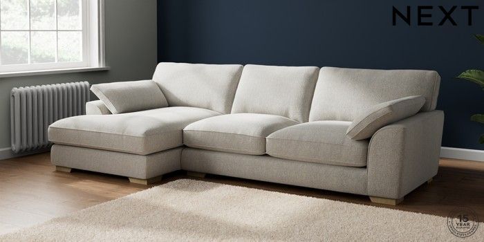7.2.6 Buy Stamford Grand Relaxed Sit Large Sofa Chaise - Left Hand Multi Weave Light Blue Large Square Angle - Light from the Next UK online shop Click here to use our accessible website