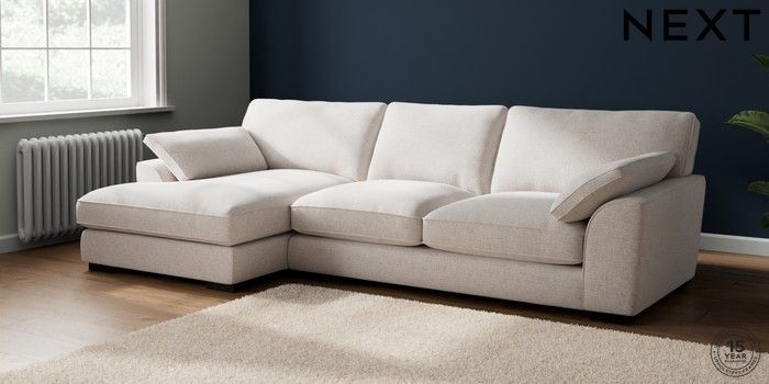 7.2.6 Buy Stamford Grand Relaxed Sit Large Sofa Chaise - Left Hand Multi Weave Oyster Large Square Angle - Dark from the Next UK online shop Click here to use our accessible website