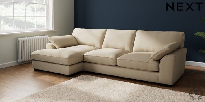 7.3.1 Buy Stamford Grand Relaxed Sit Large Sofa Chaise - Left Hand Natural Mix Light Natural Large Square Angle - Dark from the Next UK online shop Click here to use our accessible website