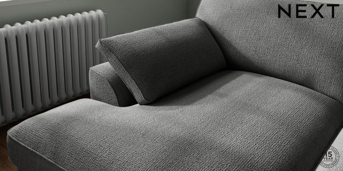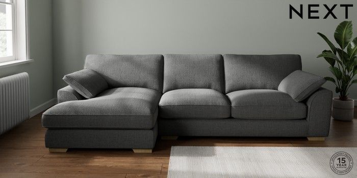 7.3.1 Buy Stamford Grand Relaxed Sit Large Sofa Chaise - Left Hand Chunky Texture Dark Grey Large Square Angle - Light from the Next UK online shop Click here to use our accessible website