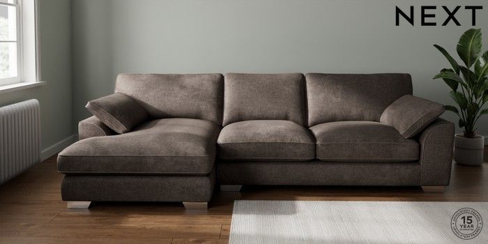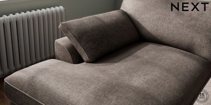 7.3.1 Buy Stamford Grand Relaxed Sit Large Sofa Chaise - Left Hand Plush Chenille Mink Brown Large Square Angle - Chrome Metal from the Next UK online shop Click here to use our accessible website