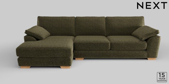 6.12.1 Buy Stamford Grand Relaxed Sit Large Sofa Chaise - Left Hand Plush Chenille Moss Green Large Square Angle - Dark from the Next UK online shop Click here to use our accessible website