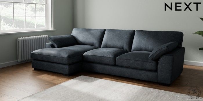7.2.10 Buy Stamford Grand Relaxed Sit Large Sofa Chaise - Left Hand Plush Chenille Slate Blue Large Square Angle - Dark from the Next UK online shop Click here to use our accessible website