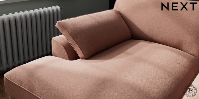 7.3.1 Buy Stamford Grand Relaxed Sit Large Sofa Chaise - Left Hand Relaxed Linen Look Light Rust Brown Large Square Angle - Chrome Metal from the Next UK online shop Click here to use our accessible website
