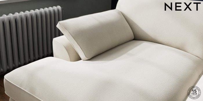 7.3.1 Buy Stamford Grand Relaxed Sit Large Sofa Chaise - Left Hand Relaxed Linen Look Oyster Large Square Angle - Gunmetal from the Next UK online shop