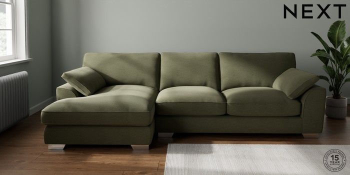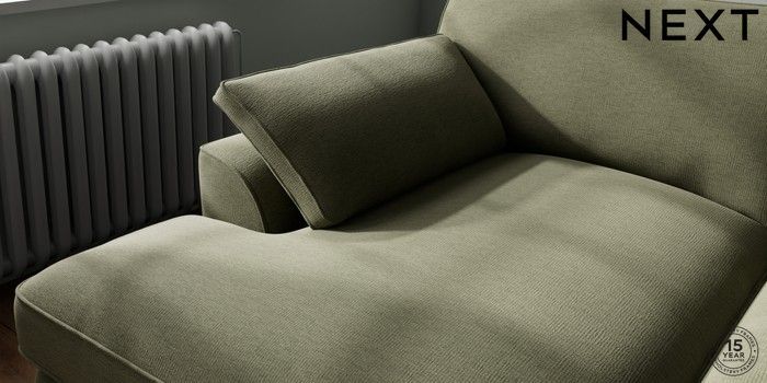 7.3.1 Buy Stamford Grand Relaxed Sit Large Sofa Chaise - Left Hand Ripple Chenille Mid Moss Green Large Square Angle - Chrome Metal from the Next UK online shop Click here to use our accessible website