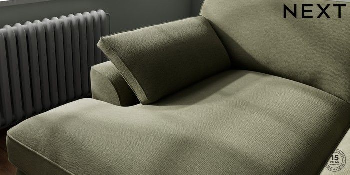 7.3.1 Buy Stamford Grand Relaxed Sit Large Sofa Chaise - Left Hand Ripple Chenille Mid Moss Green Large Square Angle - Gunmetal from the Next UK online shop Click here to use our accessible website