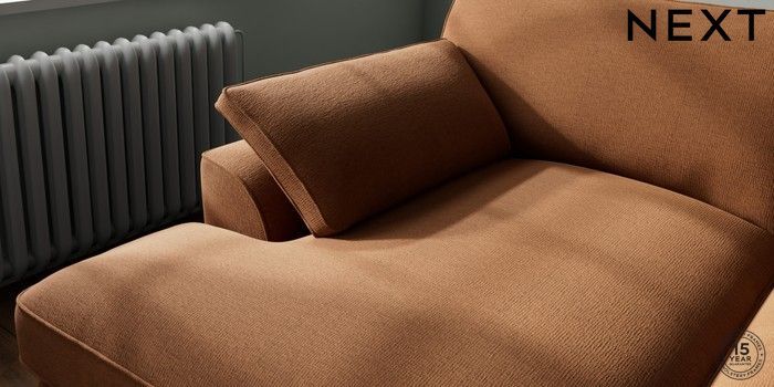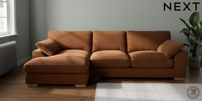 6.12.1 Buy Stamford Grand Relaxed Sit Large Sofa Chaise - Left Hand Ripple Chenille Mid Rust Brown Large Square Angle - Light from the Next UK online shop Click here to use our accessible website