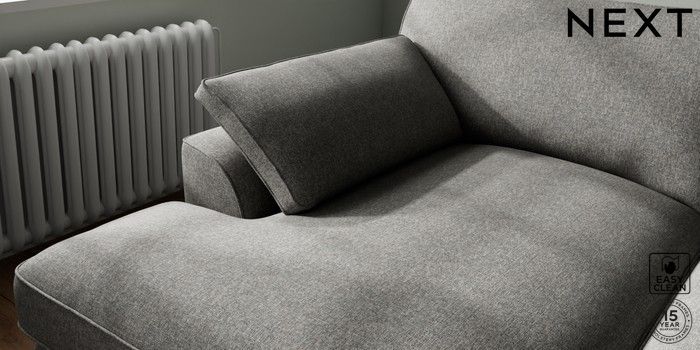 7.3.1 Buy Stamford Grand Relaxed Sit Large Sofa Chaise - Left Hand Tweedy Blend Easy Clean Dark Grey Large Square Angle - Dark from the Next UK online shop Click here to use our accessible website