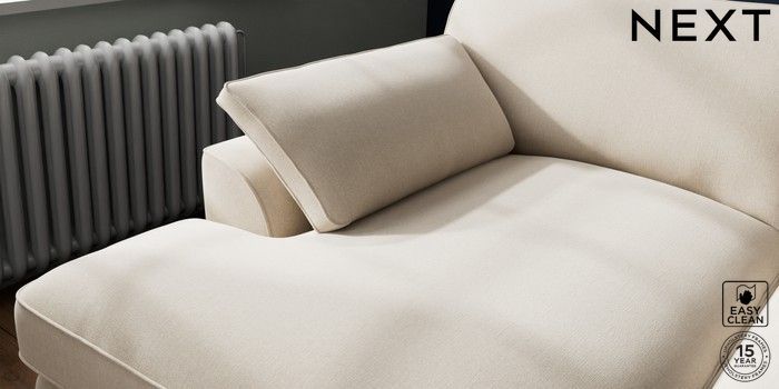 7.3.1 Buy Stamford Grand Relaxed Sit Large Sofa Chaise - Left Hand Tweedy Blend Easy Clean Oyster Large Square Angle - Gunmetal from the Next UK online shop Click here to use our accessible website