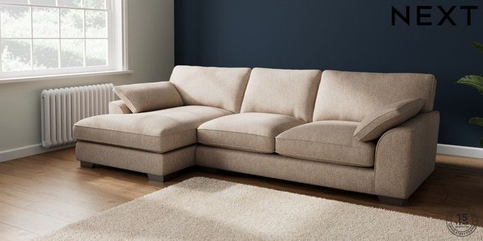 7.3.1 Buy Stamford Grand Relaxed Sit Large Sofa Chaise - Left Hand Tweedy Chenille Mid Natural Large Square Angle - Gunmetal from the Next UK online shop Click here to use our accessible website