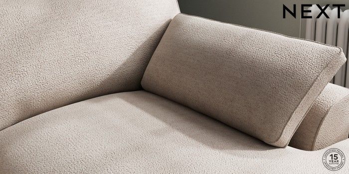 7.3.1 Buy Stamford Grand Relaxed Sit Large Sofa Chaise - Right Hand Boucle Chenille Light Natural Large Square Angle - Brushed Brass from the Next UK online shop Click here to use our accessible website