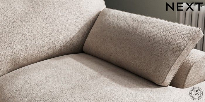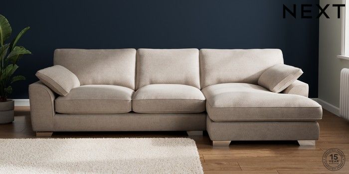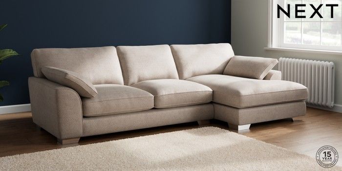 7.3.1 Buy Stamford Grand Relaxed Sit Large Sofa Chaise - Right Hand Boucle Chenille Light Natural Large Square Angle - Chrome Metal from the Next UK online shop Click here to use our accessible website