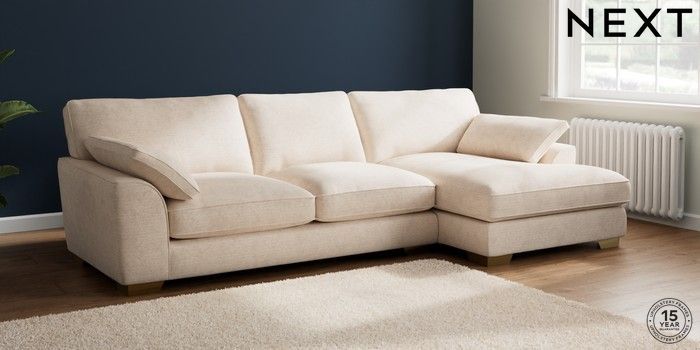 7.3.1 Buy Stamford Grand Relaxed Sit Large Sofa Chaise - Right Hand Boucle Chenille Oyster Large Square Angle - Brushed Brass from the Next UK online shop Click here to use our accessible website