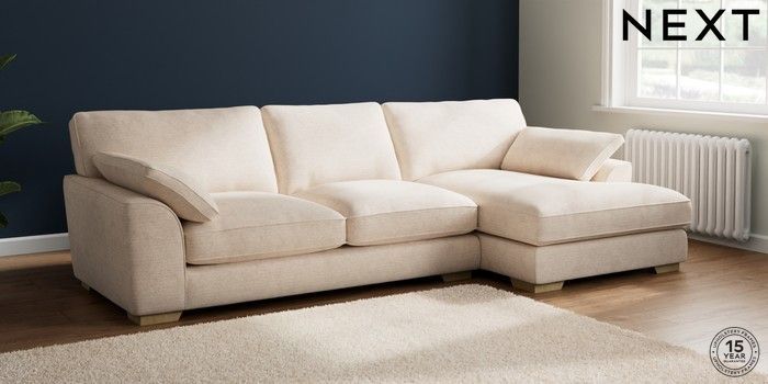 7.2.10 Buy Stamford Grand Relaxed Sit Large Sofa Chaise - Right Hand Boucle Chenille Oyster Large Square Angle - Light from the Next UK online shop Click here to use our accessible website