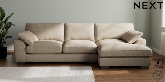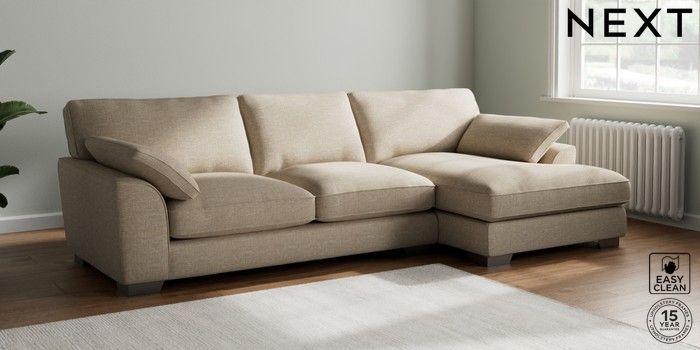 7.3.1 Buy Stamford Grand Relaxed Sit Large Sofa Chaise - Right Hand Boucle Weave Easy Clean Dark Natural Large Square Angle - Gunmetal from the Next UK online shop Click here to use our accessible website