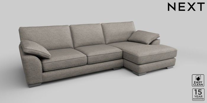 6.12.1 Buy Stamford Grand Relaxed Sit Large Sofa Chaise - Right Hand Fine Chenille Easy Clean Oyster Large Square Angle - Gunmetal from the Next UK online shop Click here to use our accessible website