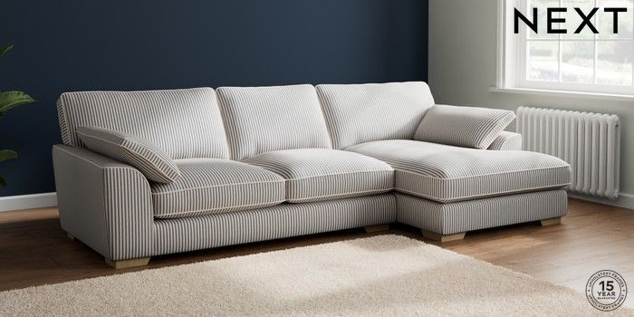 7.2.10 Buy Stamford Grand Relaxed Sit Large Sofa Chaise - Right Hand Chenille Stripe Slate Blue Large Square Angle - Light from the Next UK online shop Click here to use our accessible website