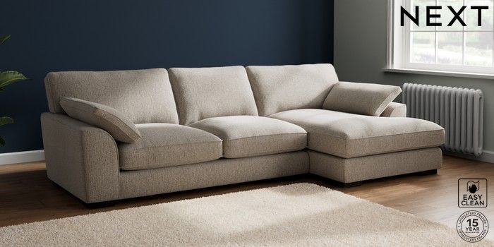 7.3.1 Buy Stamford Grand Relaxed Sit Large Sofa Chaise - Right Hand Chunky Boucle Easy Clean Dove Large Square Angle - Dark from the Next UK online shop Click here to use our accessible website