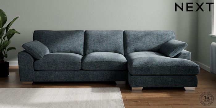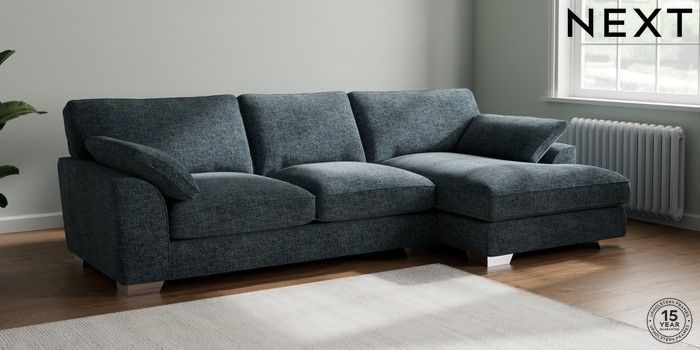 7.3.1 Buy Stamford Grand Relaxed Sit Large Sofa Chaise - Right Hand Chunky Chenille Dark Navy Blue Large Square Angle - Chrome Metal from the Next UK online shop Click here to use our accessible website