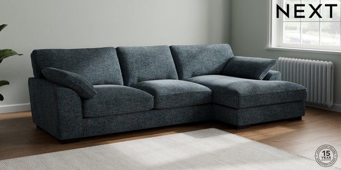 7.3.1 Buy Stamford Grand Relaxed Sit Large Sofa Chaise - Right Hand Chunky Chenille Dark Navy Blue Large Square Angle - Dark from the Next UK online shop Click here to use our accessible website