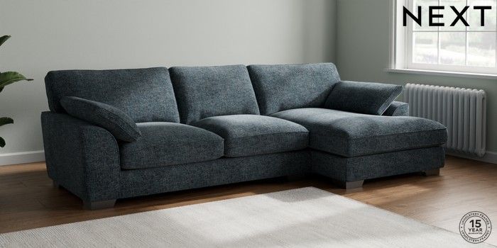 7.3.1 Buy Stamford Grand Relaxed Sit Large Sofa Chaise - Right Hand Chunky Chenille Dark Navy Blue Large Square Angle - Gunmetal from the Next UK online shop Click here to use our accessible website