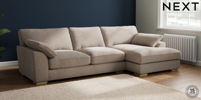 7.2.10 Buy Stamford Grand Relaxed Sit Large Sofa Chaise - Right Hand Chunky Chenille Light Dove Large Square Angle - Light from the Next UK online shop Click here to use our accessible website