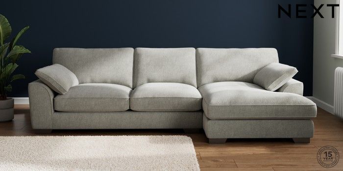 7.3.1 Buy Stamford Grand Relaxed Sit Large Sofa Chaise - Right Hand Chunky Chenille Light Grey Large Square Angle - Gunmetal from the Next UK online shop Click here to use our accessible website