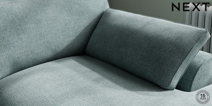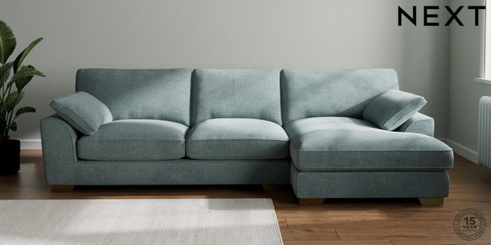 7.3.1 Buy Stamford Grand Relaxed Sit Large Sofa Chaise - Right Hand Chunky Chenille Light Teal Green Large Square Angle - Brushed Brass from the Next UK online shop Click here to use our accessible website