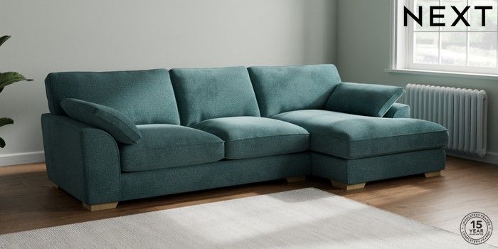 7.3.1 Buy Stamford Grand Relaxed Sit Large Sofa Chaise - Right Hand Chunky Chenille Mid Teal Green Large Square Angle - Light from the Next UK online shop Click here to use our accessible website