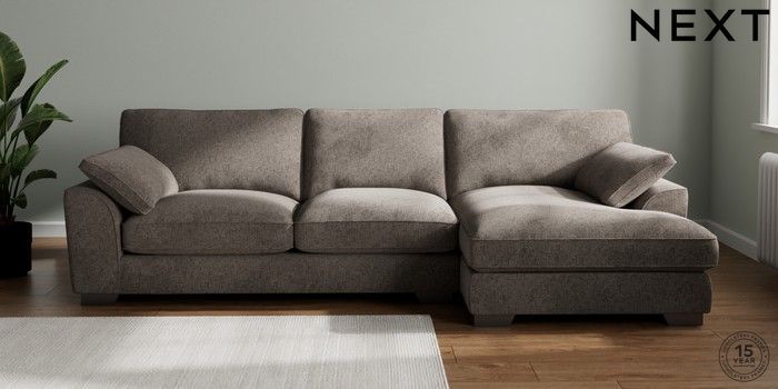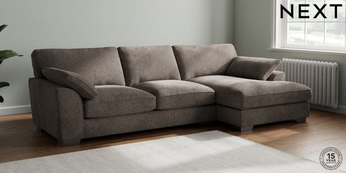 7.3.1 Buy Stamford Grand Relaxed Sit Large Sofa Chaise - Right Hand Chunky Chenille Mink Brown Large Square Angle - Gunmetal from the Next UK online shop Click here to use our accessible website