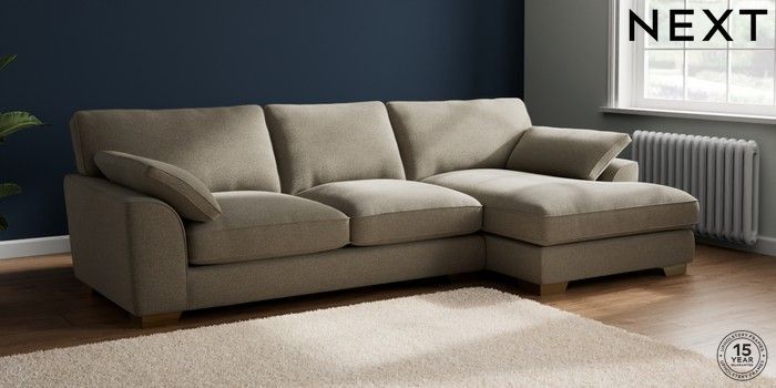 7.3.1 Buy Stamford Grand Relaxed Sit Large Sofa Chaise - Right Hand Chunky Marl Light Olive Green Large Square Angle - Brushed Brass from the Next UK online shop Click here to use our accessible website
