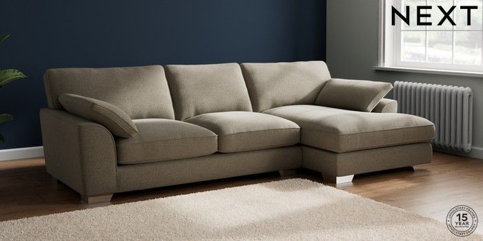 7.3.1 Buy Stamford Grand Relaxed Sit Large Sofa Chaise - Right Hand Chunky Marl Light Olive Green Large Square Angle - Chrome Metal from the Next UK online shop Click here to use our accessible website