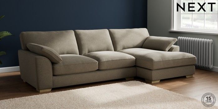 7.3.1 Buy Stamford Grand Relaxed Sit Large Sofa Chaise - Right Hand Chunky Marl Light Olive Green Large Square Angle - Light from the Next UK online shop Click here to use our accessible website