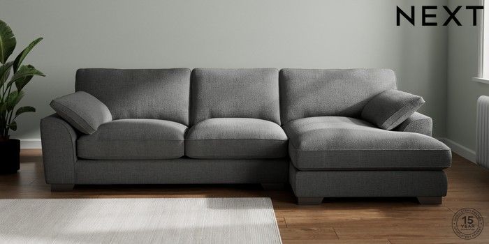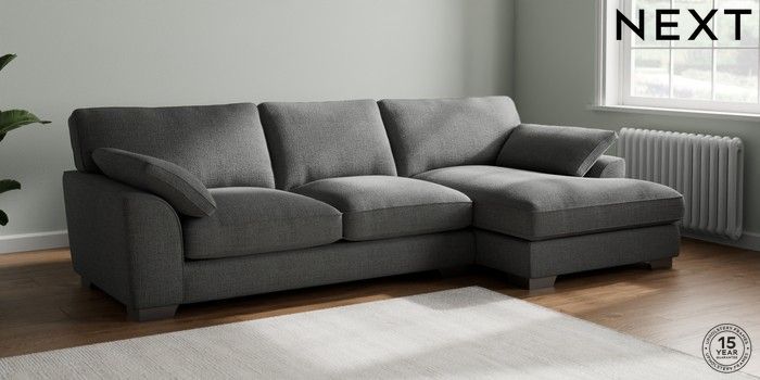 7.3.1 Buy Stamford Grand Relaxed Sit Large Sofa Chaise - Right Hand Chunky Texture Dark Grey Large Square Angle - Gunmetal from the Next UK online shop Click here to use our accessible website