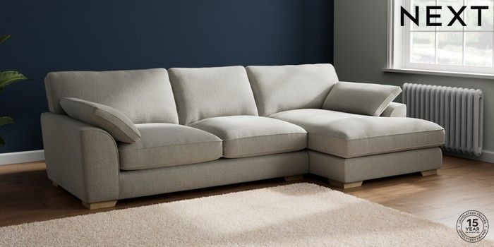 7.2.10 Buy Stamford Grand Relaxed Sit Large Sofa Chaise - Right Hand Chunky Texture Dove Large Square Angle - Light from the Next UK online shop Click here to use our accessible website
