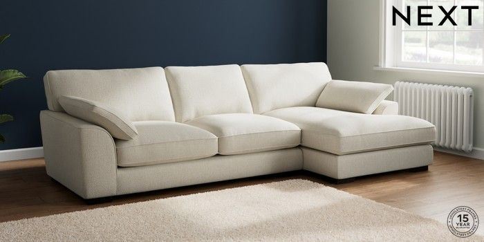 7.2.10 Buy Stamford Grand Relaxed Sit Large Sofa Chaise - Right Hand Chunky Texture Oyster Large Square Angle - Dark from the Next UK online shop Click here to use our accessible website