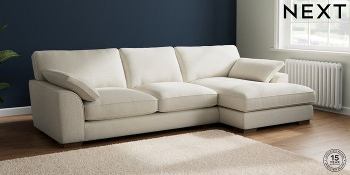 7.2.10 Buy Stamford Grand Relaxed Sit Large Sofa Chaise - Right Hand Chunky Texture Oyster Large Square Angle - Mid from the Next UK online shop Click here to use our accessible website