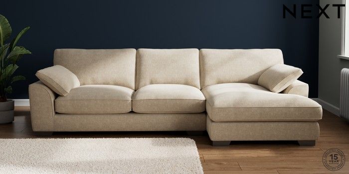 7.3.1 Buy Stamford Grand Relaxed Sit Large Sofa Chaise - Right Hand Chunky Weave Cream Large Square Angle - Gunmetal from the Next UK online shop Click here to use our accessible website