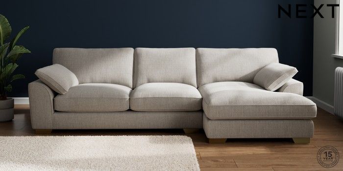 7.3.1 Buy Stamford Grand Relaxed Sit Large Sofa Chaise - Right Hand Chunky Weave Dove Grey Large Square Angle - Brushed Brass from the Next UK online shop Click here to use our accessible website