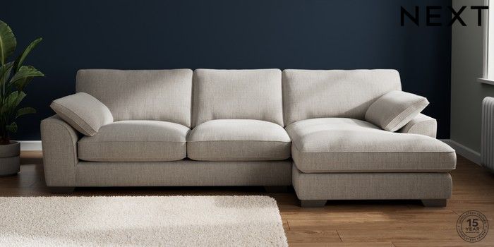 7.3.1 Buy Stamford Grand Relaxed Sit Large Sofa Chaise - Right Hand Chunky Weave Dove Grey Large Square Angle - Gunmetal from the Next UK online shop Click here to use our accessible website