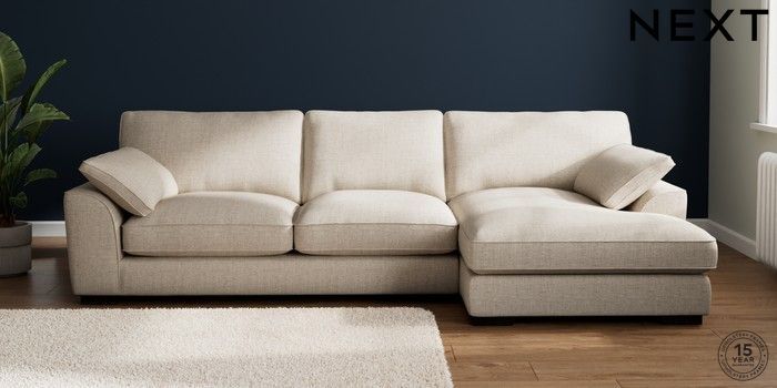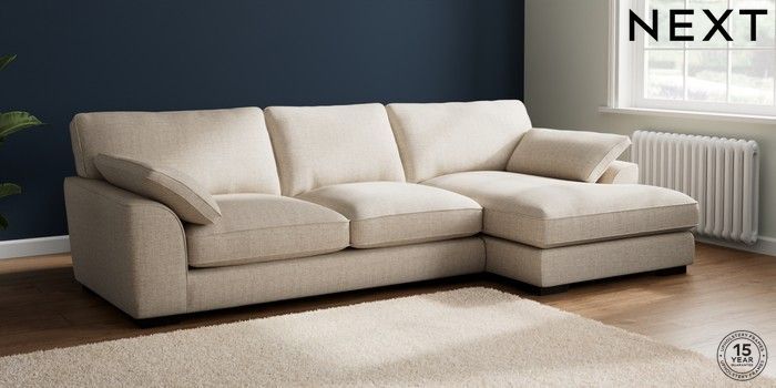 7.3.1 Buy Stamford Grand Relaxed Sit Large Sofa Chaise - Right Hand Chunky Weave Mid Natural Large Square Angle - Dark from the Next UK online shop Click here to use our accessible website