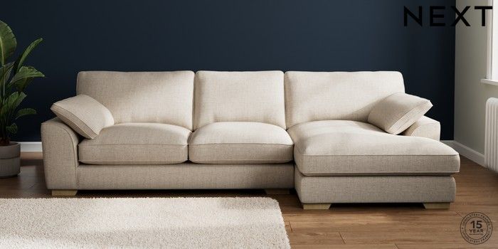 7.3.1 Buy Stamford Grand Relaxed Sit Large Sofa Chaise - Right Hand Chunky Weave Mid Natural Large Square Angle - Light from the Next UK online shop Click here to use our accessible website