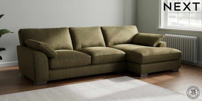 7.3.1 Buy Stamford Grand Relaxed Sit Large Sofa Chaise - Right Hand Cotswold Chenille Dark Green Large Square Angle - Gunmetal from the Next UK online shop Click here to use our accessible website