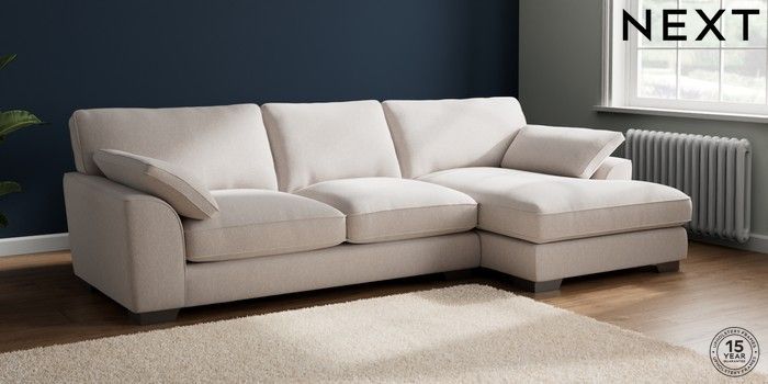 7.3.1 Buy Stamford Grand Relaxed Sit Large Sofa Chaise - Right Hand Cotswold Chenille Oyster Large Square Angle - Gunmetal from the Next UK online shop Click here to use our accessible website