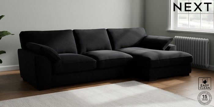 7.3.1 Buy Stamford Grand Relaxed Sit Large Sofa Chaise - Right Hand Fine Chenille Easy Clean Black Large Square Angle - Dark from the Next UK online shop Click here to use our accessible website